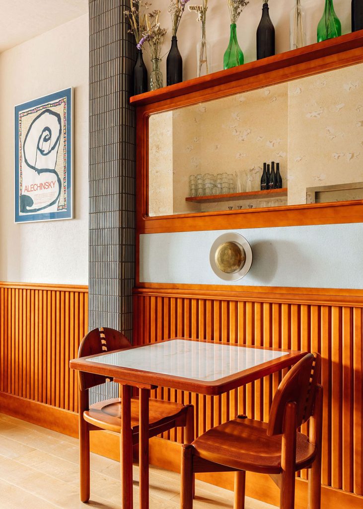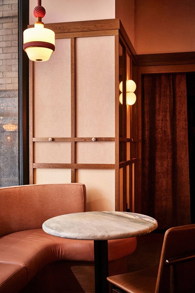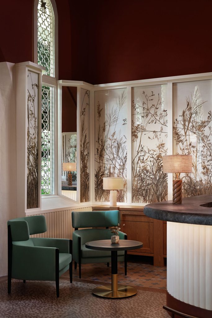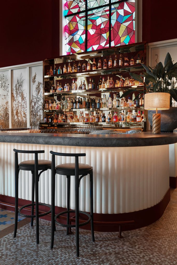 London practice Nice Projects – led Simone McEwan and Sacha Leong – conceived Claudine’s interiors, working the converted chapel’s historic elements including wrought iron grilles and a stained glass window into the new design.