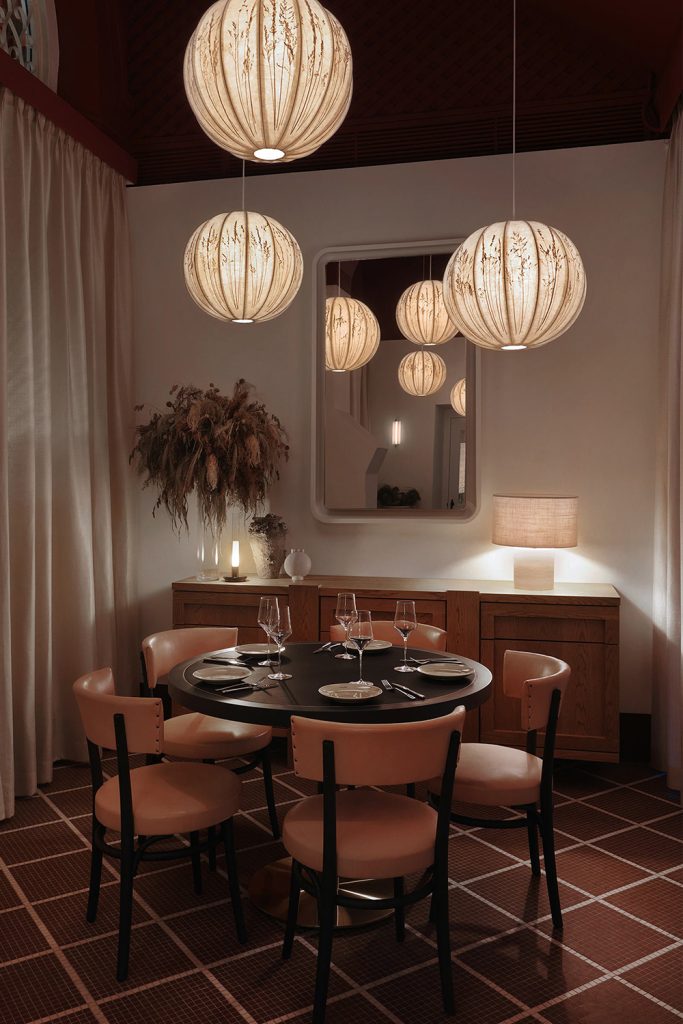 This Korean influence can be seen in Oiji Mi’s timber ceiling and partitions, as well as its wooden floor. There are smaller references to the country’s design heritage in the form of lighting based on the shape of Korean jewellery and hairpins.