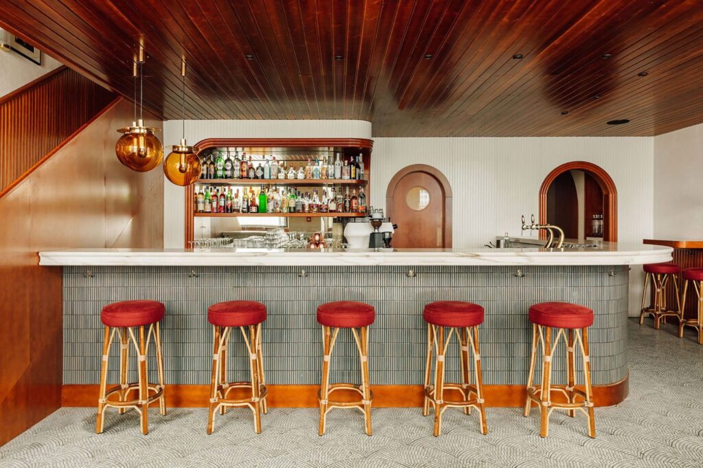 Plush seating at Tapestry in Boston adds a touch of elegance. Photo by Jared KuziaSeating type influences the posture of guests. A high bar stool, for example, prompts guests to sit up straight and lean forward. This aids in creating a lively ambience, inspiring guests to engage with each other and with bartenders. Plush banquettes, on the other hand, make people more inclined to sit back and relax. “Softer and squishier translates to lower energy,” Doyle says. This makes perfect for a quiet, romantic vibe.