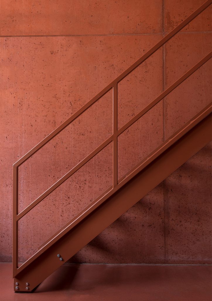 Lok6’s terracotta colour palette dominates the space, with red concrete walls and floors merging with steel beams and stairs powder-coated in the same colour. Sun filtering in through the restaurant’s front window further emphasises the richness of the shade.